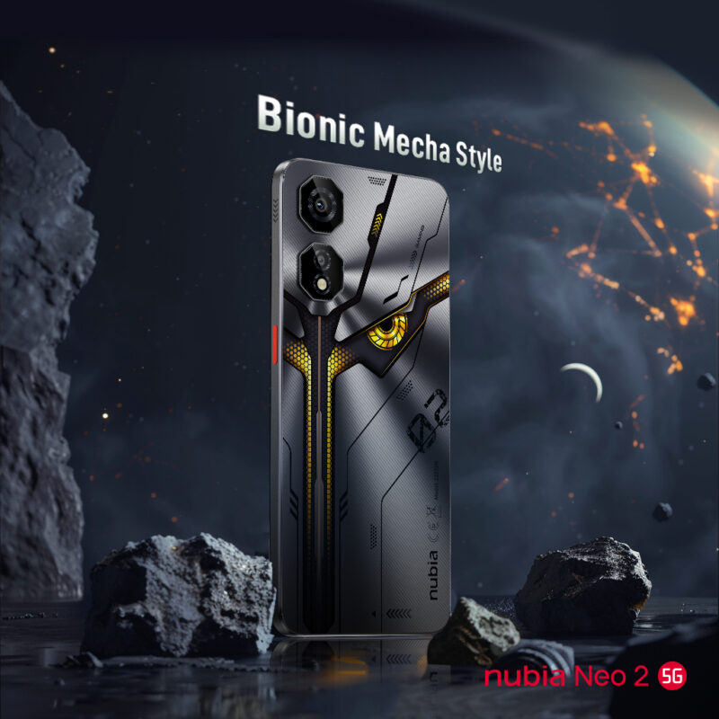 Destinat pasionaților de gaming, nubia Neo 2 5G integrează funcții avansate, precum declanșatoarele duale pentru jocuri cu rată ridicată de eșantionare tactilă, un ecran de 6,72 inci la 120Hz, dar și un sistem audio stereo cu DTS:X Ultra, pentru o experiență complet imersivă. Designul bionic mecha și modulul octogonal al camerei conferă dispozitivului un aspect distinct și futurist.